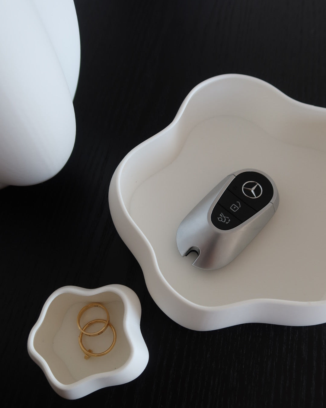 Der Halo Keeper vereint dezente Ablage und sanftes Kerzenlicht in einem. Ideal für Schmuck oder kleine Alltagsgegenstände und zugleich ein stimmungsvoller Teelichthalter. Nachhaltig in Deutschland speziell für dich gefertigt, bringt er Ruhe, Ordnung und Atmosphäre in dein Zuhause. Mit einem Breite von 6 cm und einer Höhe von 3,5 cm ist er kompakt, funktional und dennoch ein eleganter Blickfang.