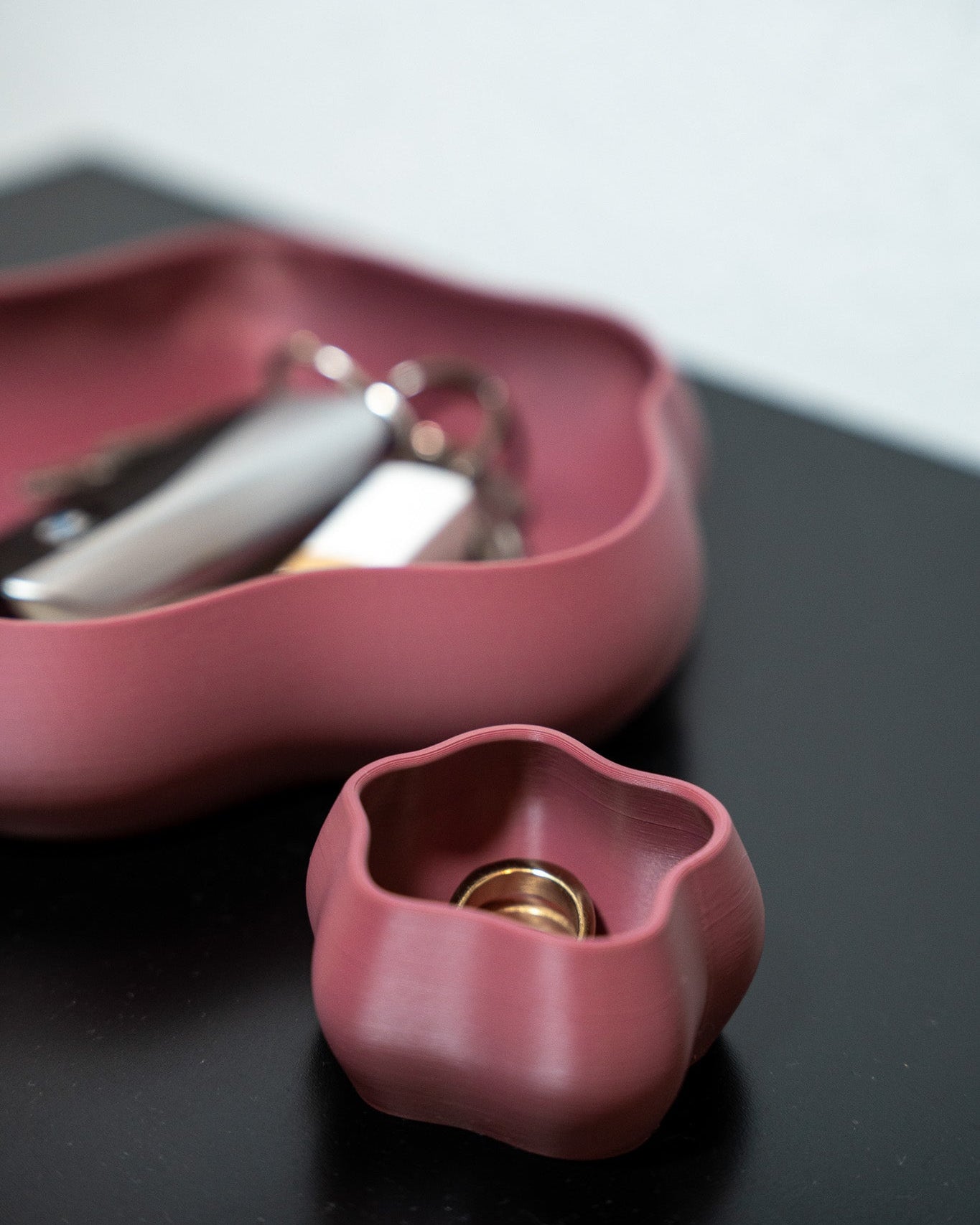 Das Unikat wird im Studio mittels 3D-Druck gefertigt. Feine Linien oder dezente Schichtmuster sind Teil dieses besonderen Fertigungsprozesses und unterstreichen den Charakter des Designs.